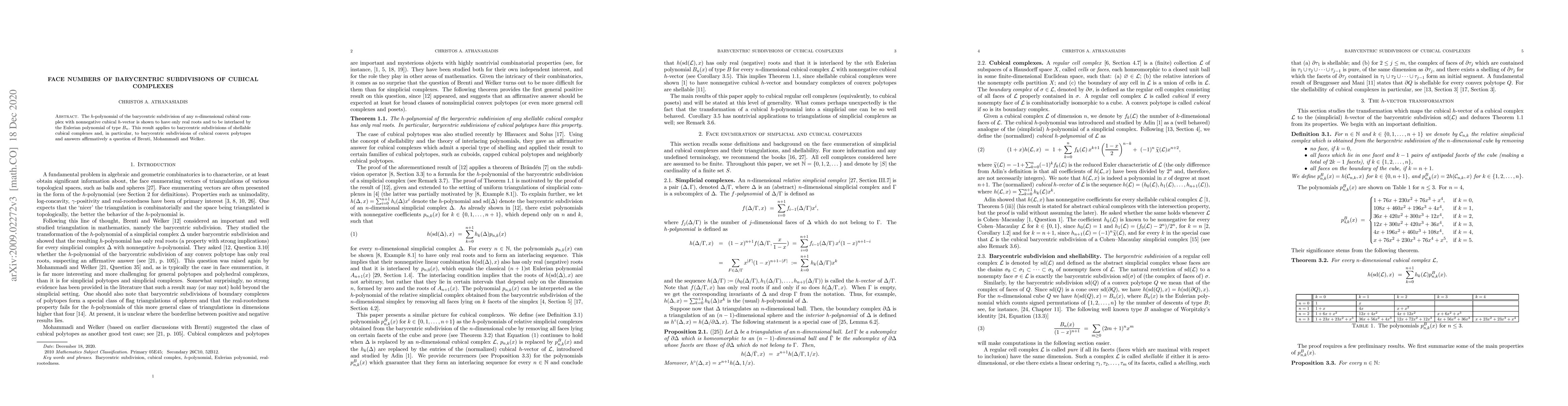 The $h$-polynomial of the barycentric subdivision of any $n$-dimensional cubical complex with nonnegative cubical $h$-vector is shown to have only real roots and to be interlaced by the Eulerian polynomial of type $B_n$. This result applies to barycentric subdivisions of shellable cubical complexes and, in particular, to barycentric subdivisions of cubical convex polytopes and answers affirmatively a question of Brenti, Mohammadi and Welker.