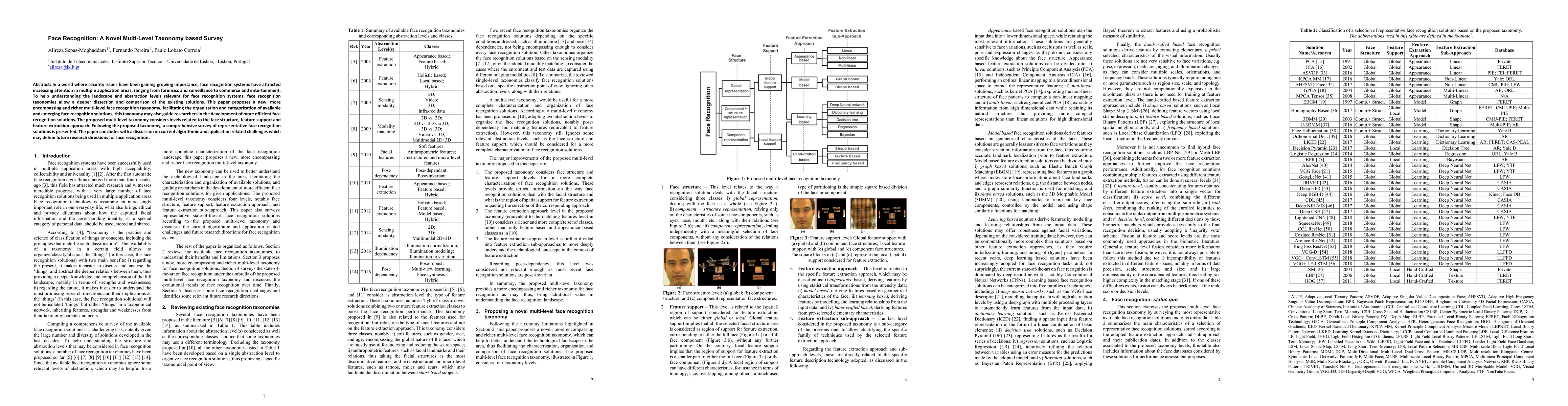 This paper proposes a new multi-level taxonomy for face recognition systems, categorizing solutions based on face structure, feature support, and extraction methods. It provides a comprehensive survey of existing systems and discusses current challenges to guide future research.