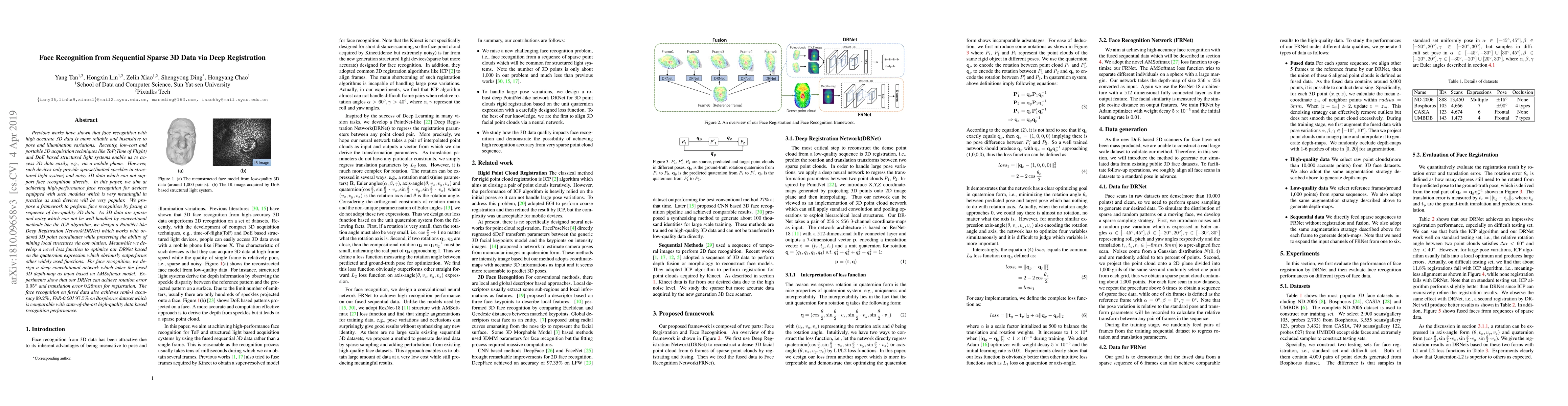 This paper proposes a framework for high-performance face recognition using sparse and noisy 3D data from low-cost devices. It introduces a Deep Registration Network (DRNet) for fusing sequential 3D data and a novel loss function for optimization, achieving a rotation error of 0.95° and translation error of 0.28mm. The method achieves 99.2% rank-1 accuracy for face recognition on the Bosphorus dataset.