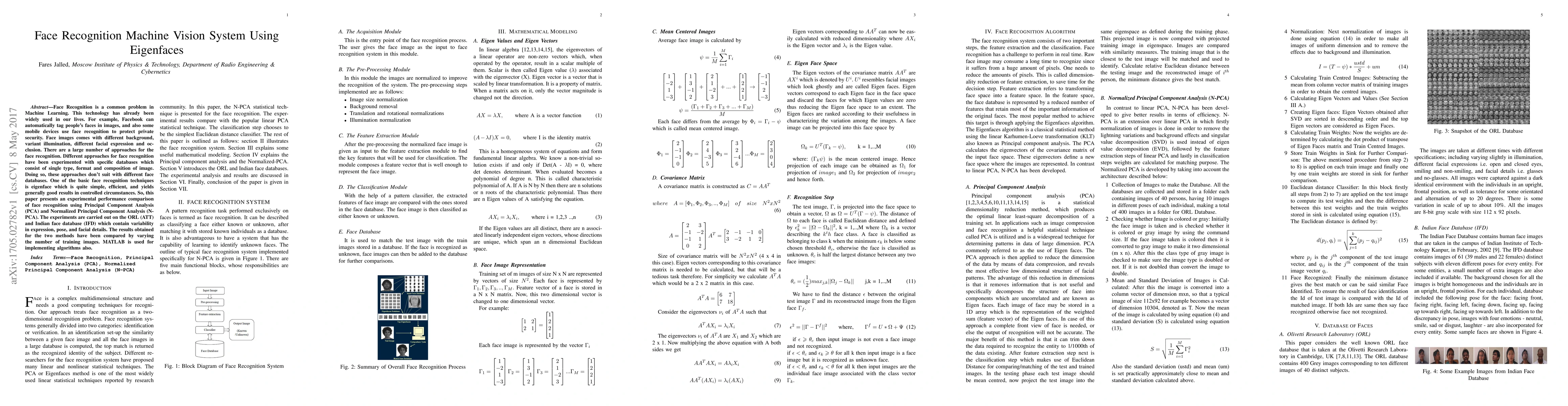 This paper compares two face recognition techniques, PCA and NPCA, on two databases (ORL and IFD), exploring their performance with varying training image numbers.