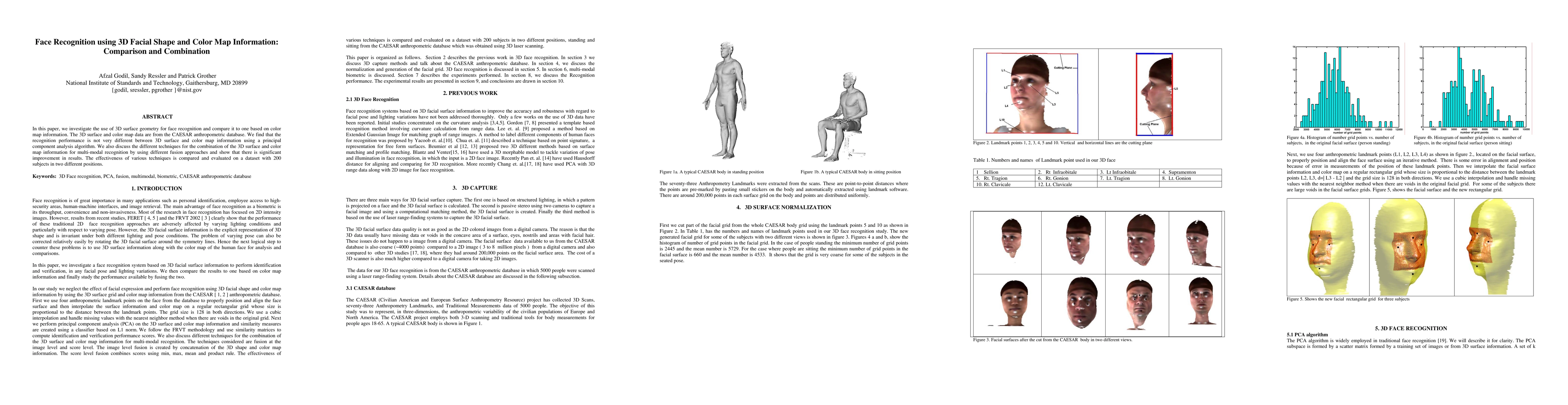This paper compares 3D facial shape and color map information for face recognition, finding similar performance using principal component analysis. It also explores combining these modalities for enhanced recognition, demonstrating significant improvements through various fusion techniques.