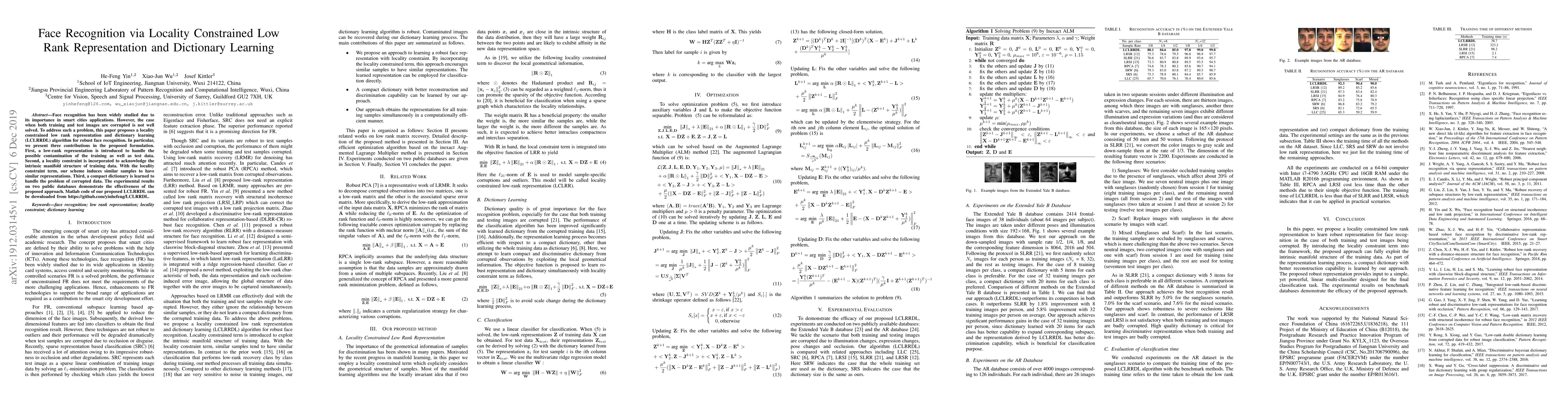 This paper proposes a novel LCLRRDL algorithm for robust face recognition under data corruption. It combines low-rank representation, locality constraints, and dictionary learning to address contaminated training and test images, demonstrating effectiveness on public datasets.