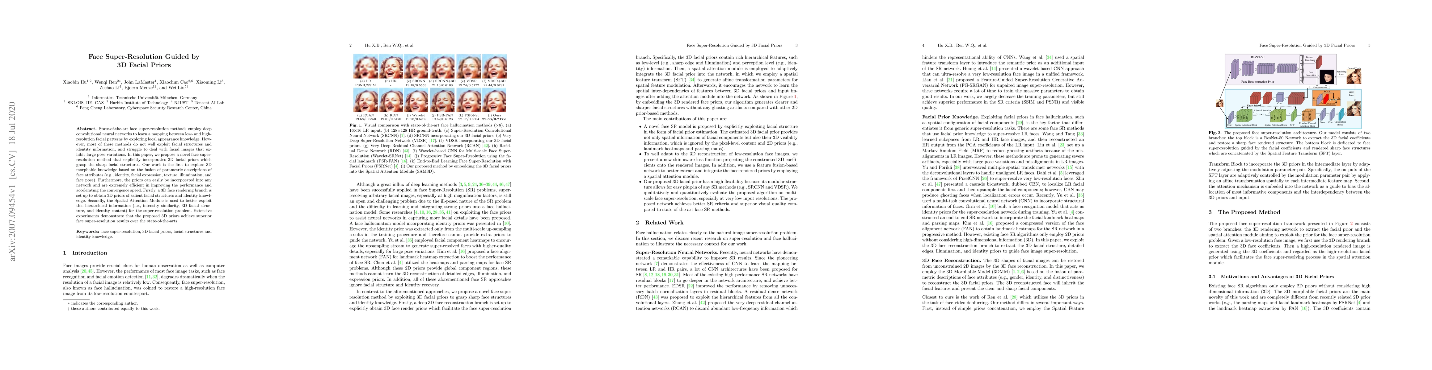This paper proposes a novel face super-resolution method that incorporates 3D facial priors to enhance facial structures and identity information. The method uses a 3D face rendering branch and a Spatial Attention Module to integrate 3D morphable knowledge, achieving superior results compared to existing methods.