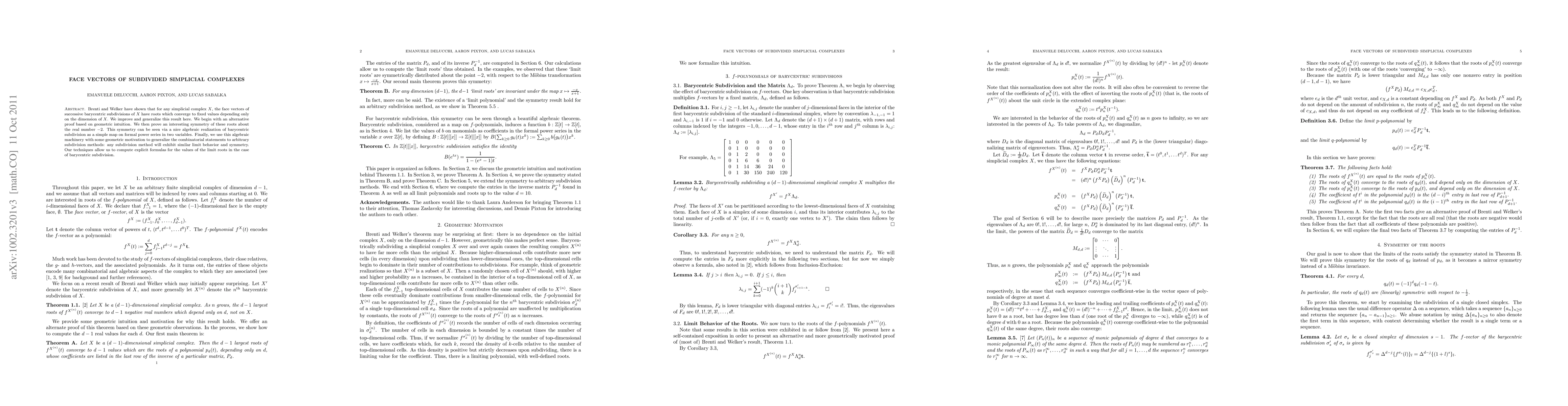 This paper improves and generalizes Brenti and Welker's result on the convergence of face vectors' roots in barycentric subdivisions of simplicial complexes, proving a symmetry about the real number -2 and extending the findings to arbitrary subdivision methods. It employs geometric intuition and algebraic machinery for explicit computation of limit roots.