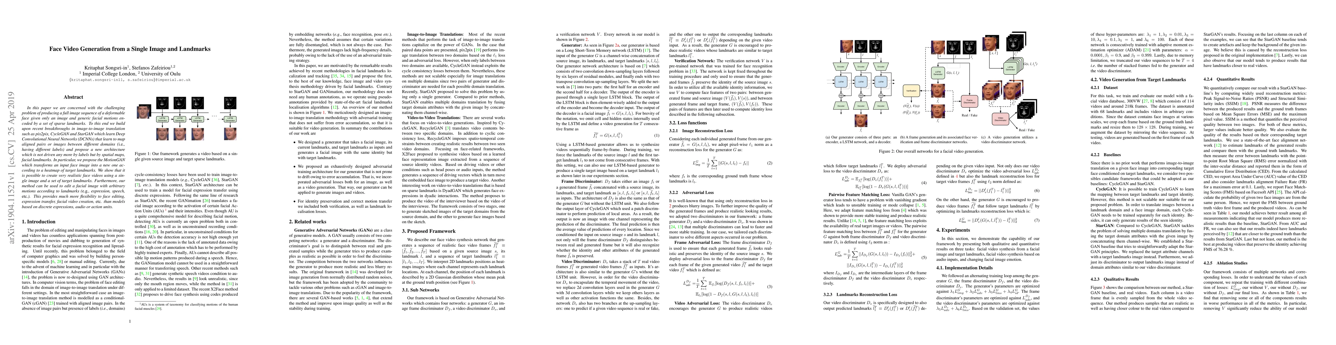 Researchers developed a new method called MotionGAN to generate realistic face videos from a single image and facial landmarks, offering more flexibility in editing and creating facial content.