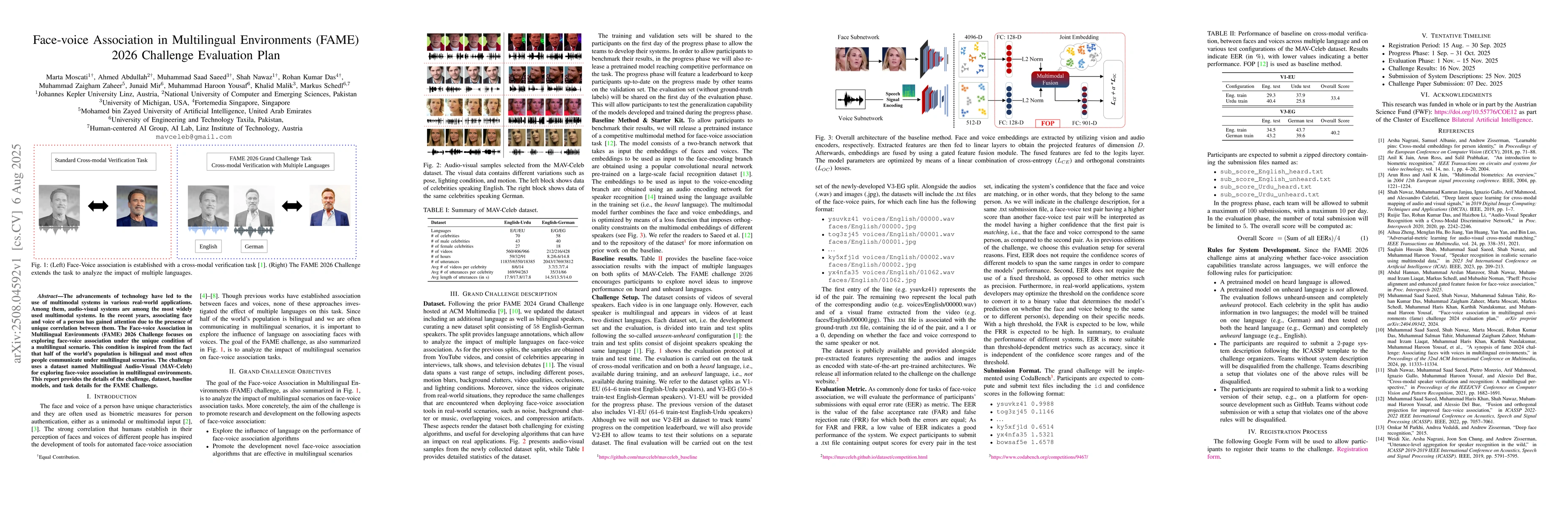 The advancements of technology have led to the use of multimodal systems in various real-world applications. Among them, audio-visual systems are among the most widely used multimodal systems. In the recent years, associating face and voice of a person has gained attention due to the presence of unique correlation between them. The Face-voice Association in Multilingual Environments (FAME) 2026 Challenge focuses on exploring face-voice association under the unique condition of a multilingual scenario. This condition is inspired from the fact that half of the world's population is bilingual and most often people communicate under multilingual scenarios. The challenge uses a dataset named Multilingual Audio-Visual (MAV-Celeb) for exploring face-voice association in multilingual environments. This report provides the details of the challenge, dataset, baseline models, and task details for the FAME Challenge.