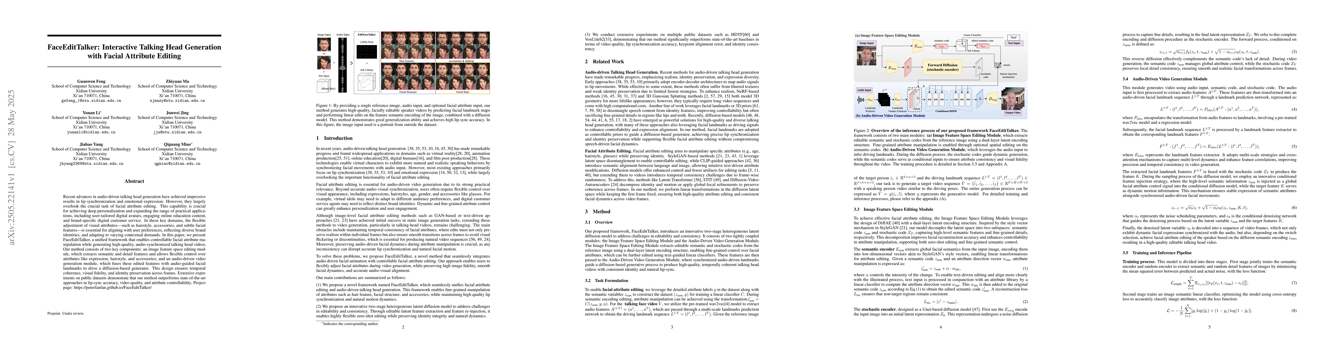 The research introduces FaceEditTalker, a unified framework for interactive talking head generation with facial attribute editing. It comprises an image feature space editing module for flexible attribute control and an audio-driven video generation module that fuses edited features with audio-guided facial landmarks to drive a diffusion-based generator, ensuring temporal coherence, visual fidelity, and identity preservation.