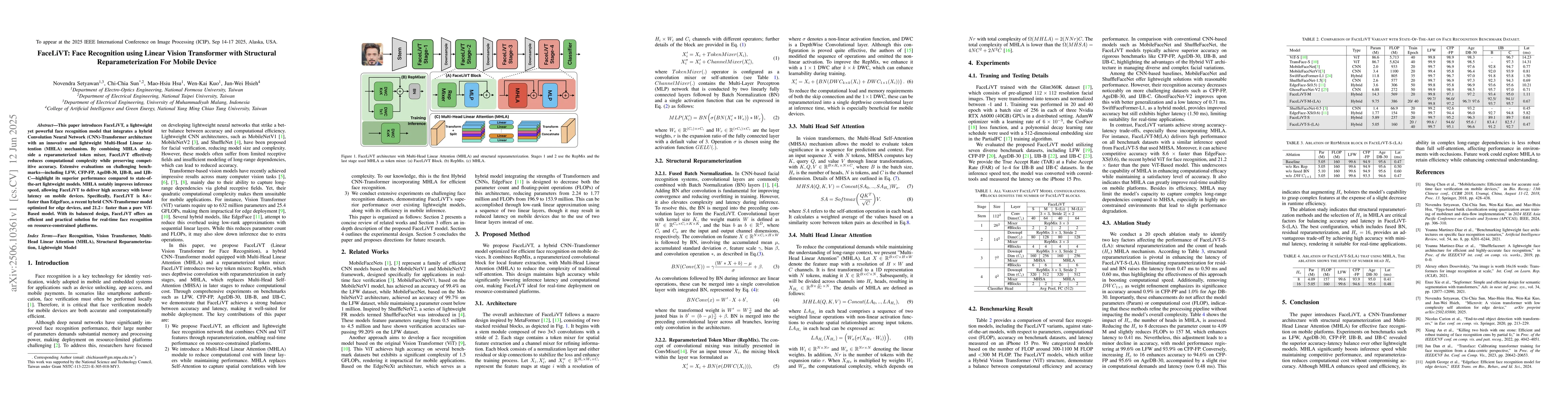 FaceLiVT is a lightweight face recognition model that uses a hybrid CNN-Transformer architecture with a novel Multi-Head Linear Attention mechanism to deliver high accuracy on mobile devices.