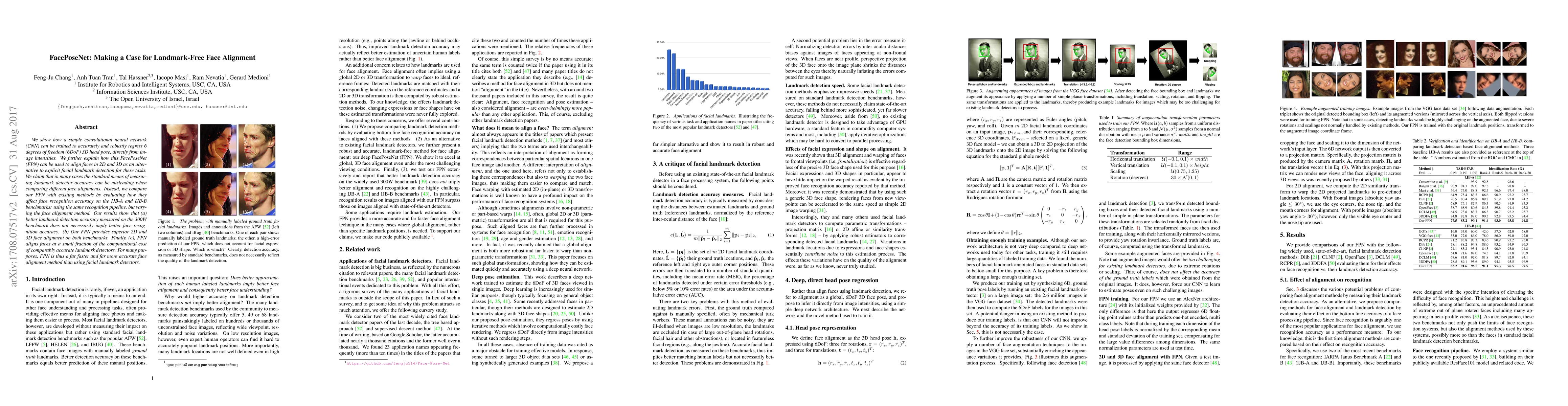 We show how a simple convolutional neural network (CNN) can be trained to accurately and robustly regress 6 degrees of freedom (6DoF) 3D head pose, directly from image intensities. We further explain how this FacePoseNet (FPN) can be used to align faces in 2D and 3D as an alternative to explicit facial landmark detection for these tasks. We claim that in many cases the standard means of measuring landmark detector accuracy can be misleading when comparing different face alignments. Instead, we compare our FPN with existing methods by evaluating how they affect face recognition accuracy on the IJB-A and IJB-B benchmarks: using the same recognition pipeline, but varying the face alignment method. Our results show that (a) better landmark detection accuracy measured on the 300W benchmark does not necessarily imply better face recognition accuracy. (b) Our FPN provides superior 2D and 3D face alignment on both benchmarks. Finally, (c), FPN aligns faces at a small fraction of the computational cost of comparably accurate landmark detectors. For many purposes, FPN is thus a far faster and far more accurate face alignment method than using facial landmark detectors.