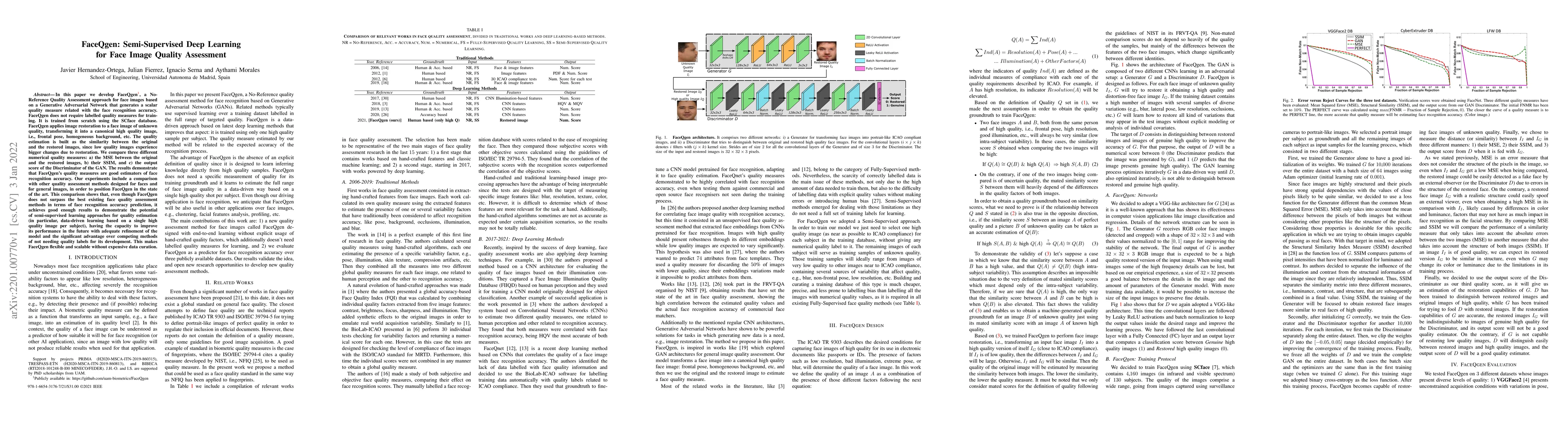 FaceQgen employs a semi-supervised deep learning approach using a Generative Adversarial Network to assess face image quality without requiring labeled data, demonstrating potential for future improvements and scalability. Comparative experiments show it performs competitively, highlighting the benefits of its label-free training method.