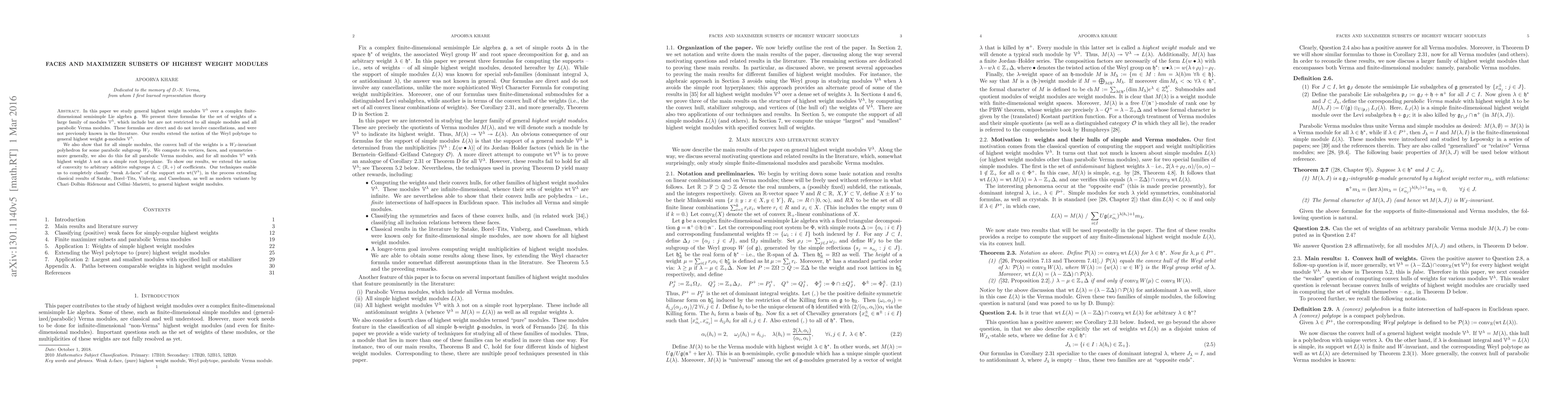 This paper presents new formulas for the weights of general highest weight modules over a complex finite-dimensional semisimple Lie algebra, extending the Weyl polytope concept. It also classifies "weak $\mathbb{A}$-faces" of support sets for these modules, providing insights into the structure of vertices, faces, and symmetries for simple and parabolic Verma modules.