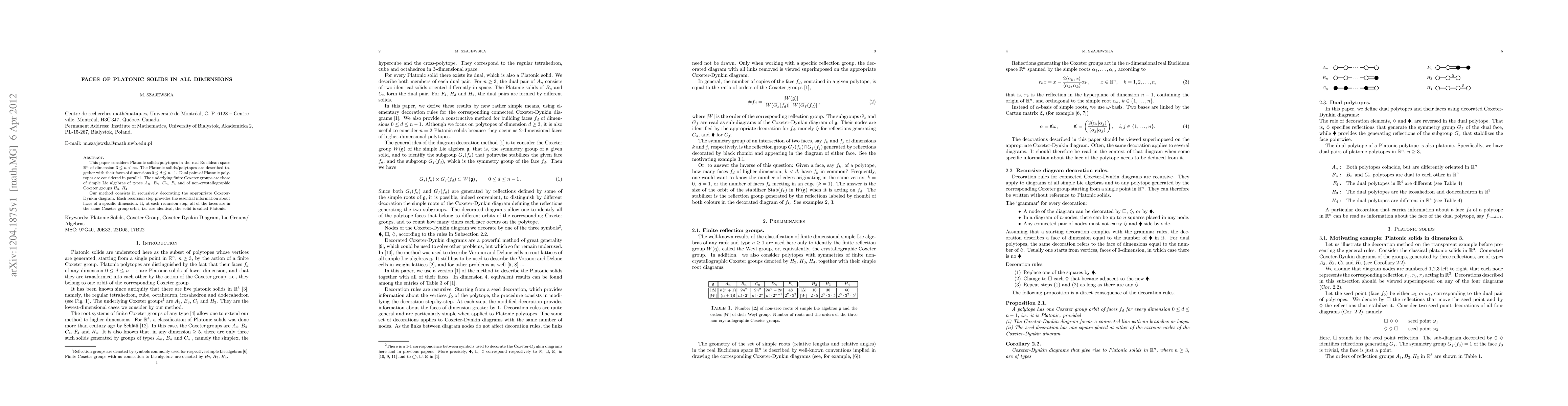 The paper introduces a novel method of decorating Coxeter-Dynkin diagrams to systematically describe Platonic solids and their faces in various dimensions, providing a formula for counting intersections of faces.