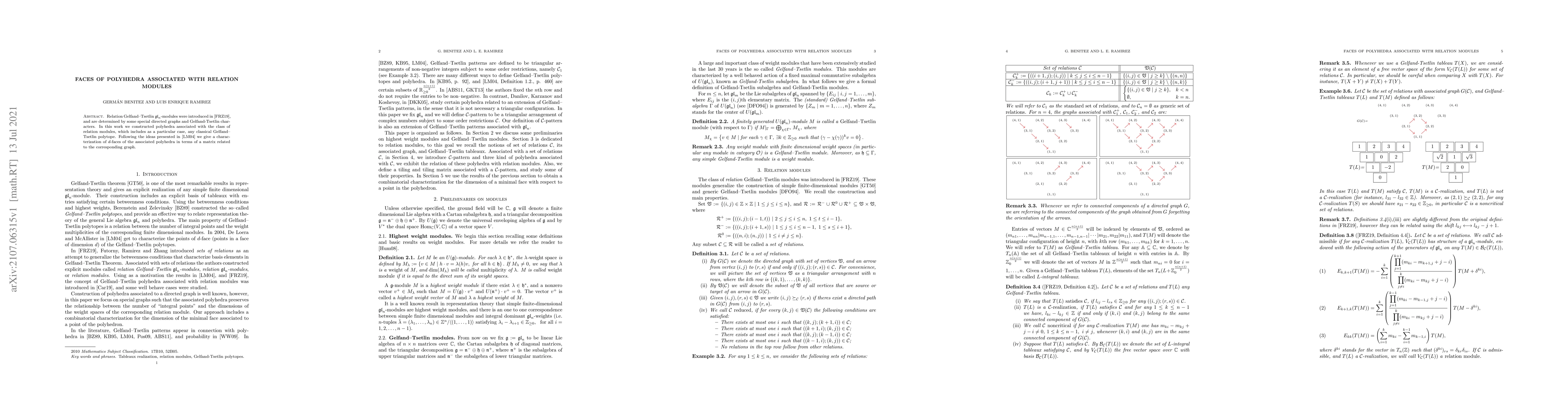 This paper constructs polyhedra linked to relation modules, specifically relation Gelfand-Tsetlin $\mathfrak{gl}_n$-modules, and characterizes their $d$-faces using a matrix derived from the associated graph. These polyhedra generalize classical Gelfand-Tsetlin polytopes.