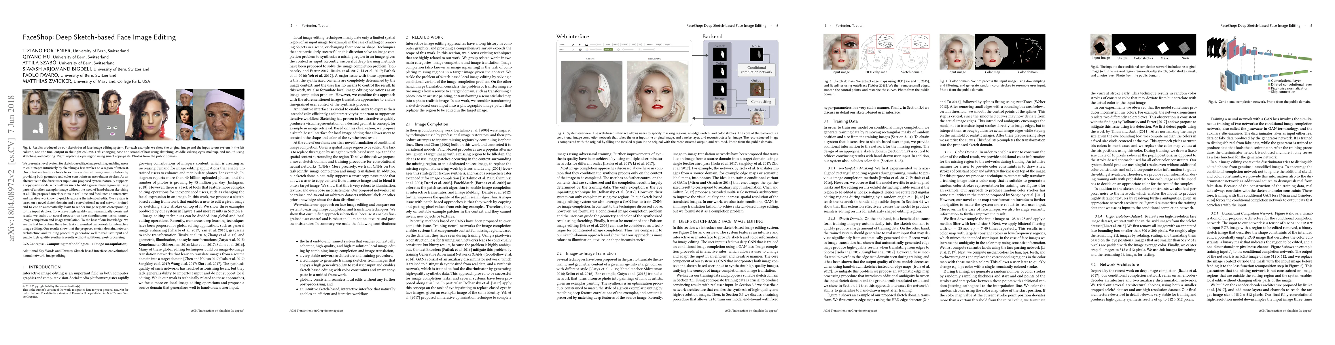 FaceShop is a novel system for sketch-based face image editing that allows users to intuitively edit images by sketching strokes or using a copy-paste mode. It leverages a convolutional neural network trained on image completion and translation tasks to achieve high-quality, semantically consistent edits.