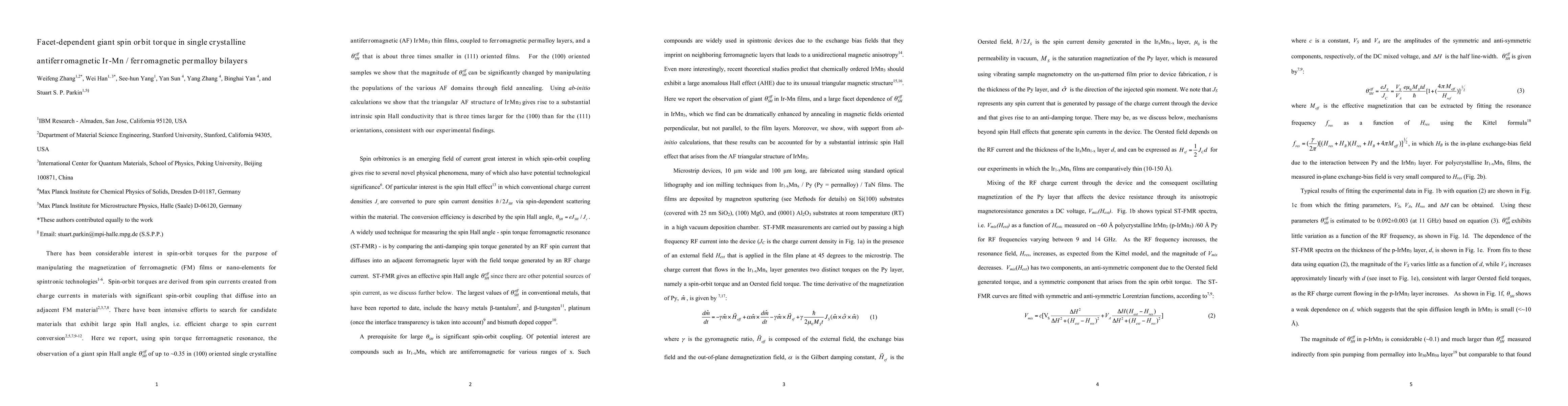 There has been considerable interest in spin-orbit torques for the purpose of manipulating the magnetization of ferromagnetic (FM) films or nano-elements for spintronic technologies. Spin-orbit torques are derived from spin currents created from charge currents in materials with significant spin-orbit coupling that diffuse into an adjacent FM material. There have been intensive efforts to search for candidate materials that exhibit large spin Hall angles, i.e. efficient charge to spin current conversion. Here we report, using spin torque ferromagnetic resonance, the observation of a giant spin Hall angle of up to ~0.35 in (100) oriented single crystalline antiferromagnetic (AF) IrMn3 thin films, coupled to ferromagnetic permalloy layers, and a spin Hall angle that is about three times smaller in (111) oriented films. For the (100) oriented samples we show that the magnitude of the spin Hall angle can be significantly changed by manipulating the populations of the various AF domains through field annealing. Using ab-initio calculations we show that the triangular AF structure of IrMn3 gives rise to a substantial intrinsic spin Hall conductivity that is three times larger for the (100) than for the (111) orientations, consistent with our experimental findings.