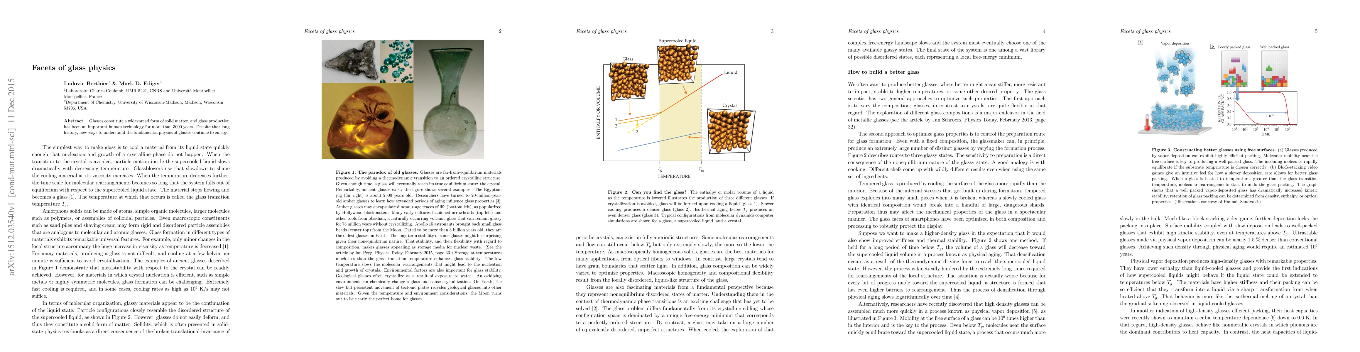 Glasses constitute a widespread form of solid matter, and glass production has been an important human technology for more than 3000 years. Despite that long history, new ways to understand the fundamental physics of glasses continue to emerge.