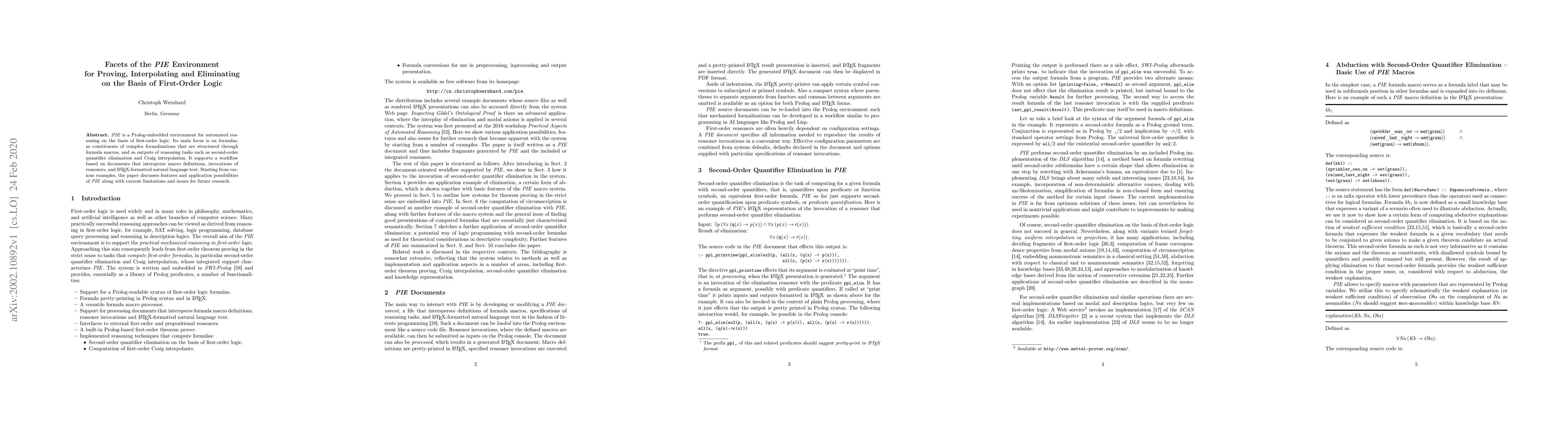 PIE is a Prolog-embedded environment for automated reasoning on the basis of first-order logic. Its main focus is on formulas, as constituents of complex formalizations that are structured through formula macros, and as outputs of reasoning tasks such as second-order quantifier elimination and Craig interpolation. It supports a workflow based on documents that intersperse macro definitions, invocations of reasoners, and LaTeX-formatted natural language text. Starting from various examples, the paper discusses features and application possibilities of PIE along with current limitations and issues for future research.
