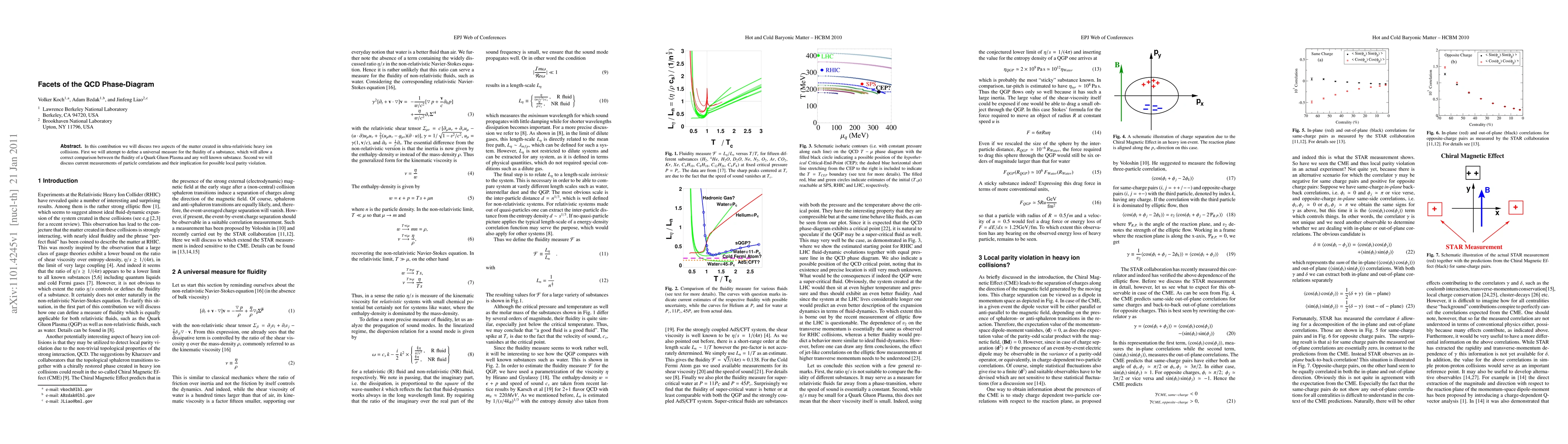 In this contribution we will discuss two aspects of the matter created in ultra-relativistic heavy ion collisions. First we will attempt to define a universal measure for the fluidity of a substance, which will allow a correct comparison between the fluidity of a Quark Gluon Plasma and any well known substance. Second we will discuss current measurements of particle correlations and their implication for possible local parity violation.