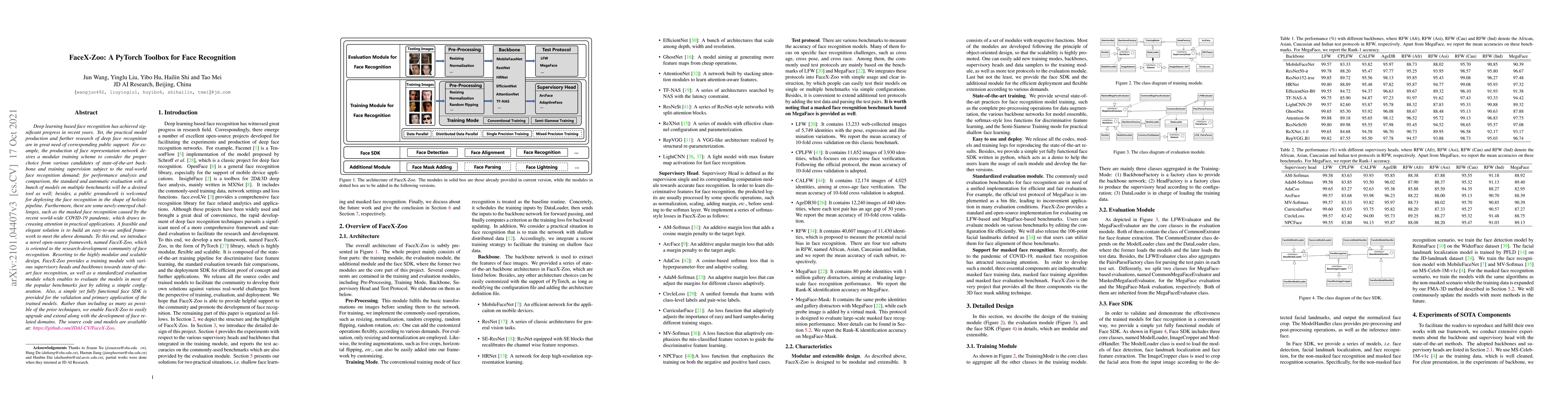 FaceX-Zoo is an open-source PyTorch toolbox designed to facilitate deep learning-based face recognition research, offering modular training schemes and standardized evaluation tools across various benchmarks. It aims to support practical model production and research, including emerging challenges like masked face recognition.