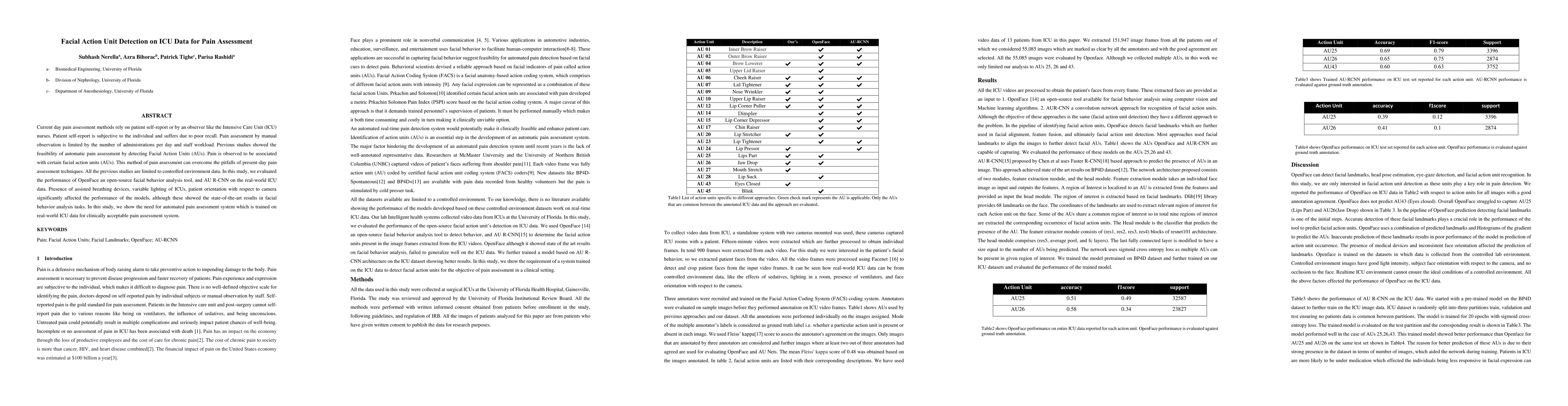 Current day pain assessment methods rely on patient self-report or by an observer like the Intensive Care Unit (ICU) nurses. Patient self-report is subjective to the individual and suffers due to poor recall. Pain assessment by manual observation is limited by the number of administrations per day and staff workload. Previous studies showed the feasibility of automatic pain assessment by detecting Facial Action Units (AUs). Pain is observed to be associated with certain facial action units (AUs). This method of pain assessment can overcome the pitfalls of present-day pain assessment techniques. All the previous studies are limited to controlled environment data. In this study, we evaluated the performance of OpenFace an open-source facial behavior analysis tool and AU R-CNN on the real-world ICU data. Presence of assisted breathing devices, variable lighting of ICUs, patient orientation with respect to camera significantly affected the performance of the models, although these showed the state-of-the-art results in facial behavior analysis tasks. In this study, we show the need for automated pain assessment system which is trained on real-world ICU data for clinically acceptable pain assessment system.