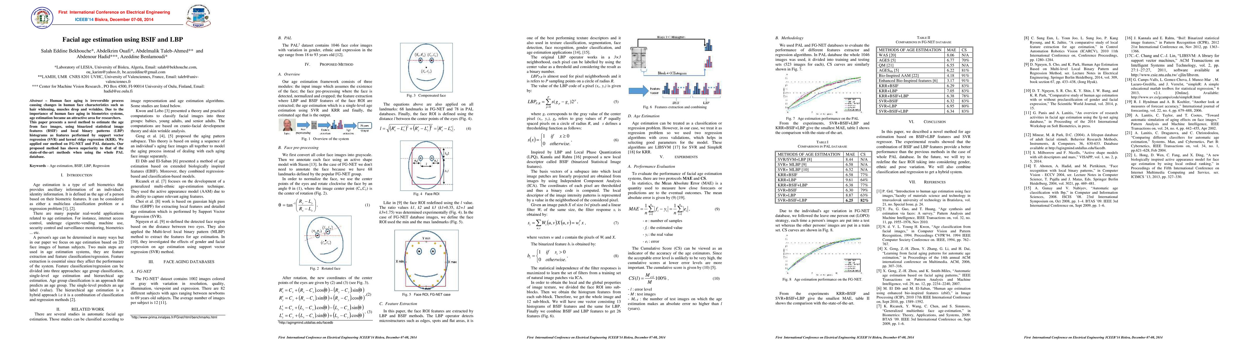 A new method uses binarized statistical image features (BSIF) and local binary patterns (LBP) to estimate a person's age from their face in images, with promising results compared to existing methods.