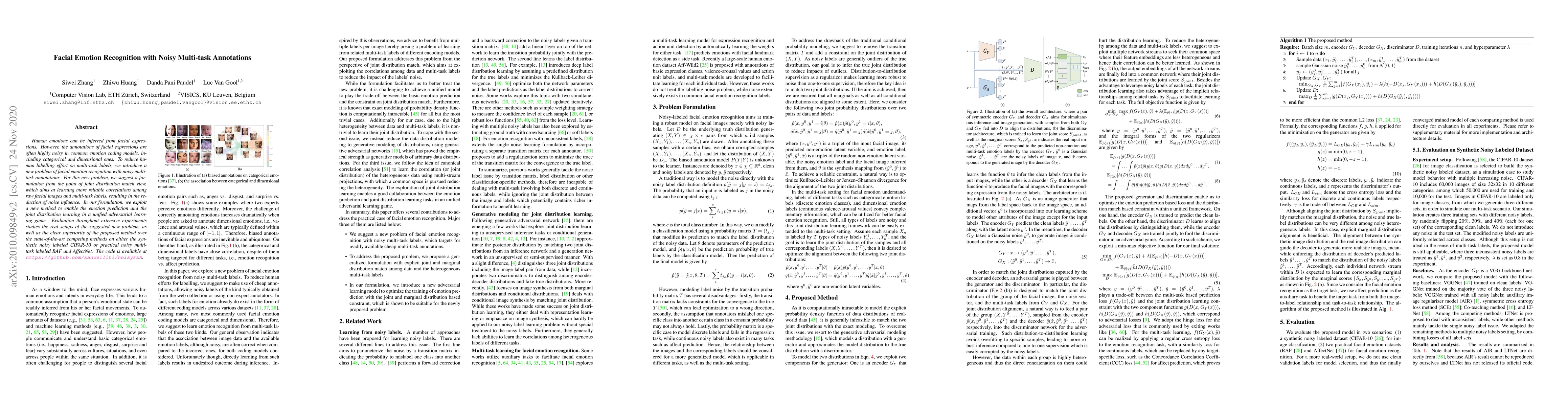 This paper proposes a novel approach for facial emotion recognition under noisy multi-task annotations, introducing a joint distribution matching formulation to learn reliable correlations between facial images and labels. The method employs adversarial learning to unify emotion prediction and distribution learning, demonstrating superior performance over state-of-the-art methods on synthetic and practical datasets.