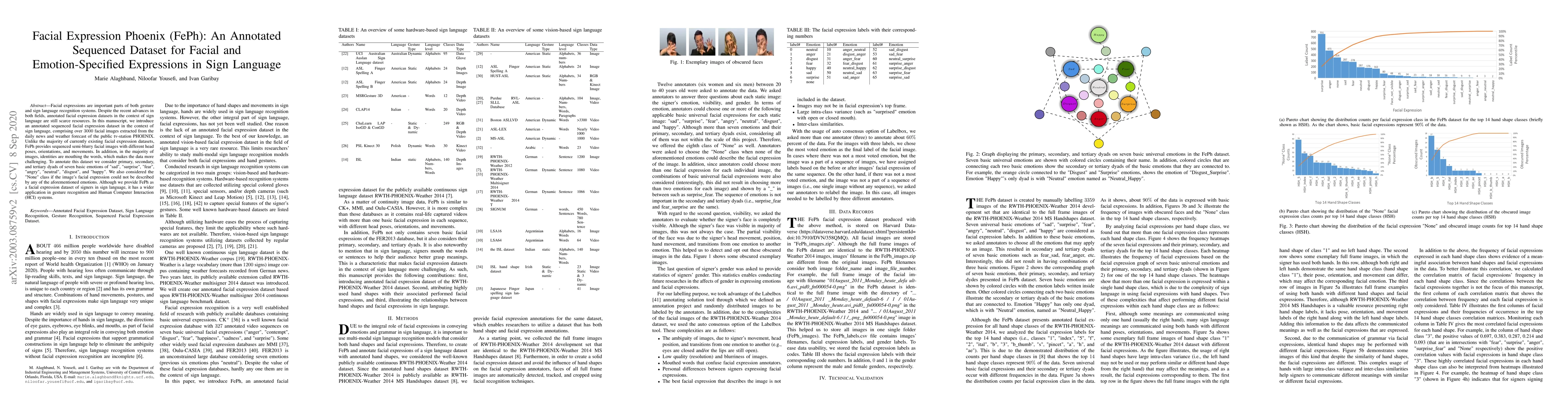 The Facial Expression Phoenix (FePh) dataset offers over 3000 sequenced facial images from public TV broadcasts, annotated with seven basic emotions and "None," providing a valuable resource for sign language, gesture recognition, and HCI systems. The dataset features semi-blurry images with varied head poses and movements, enhancing its complexity and utility.