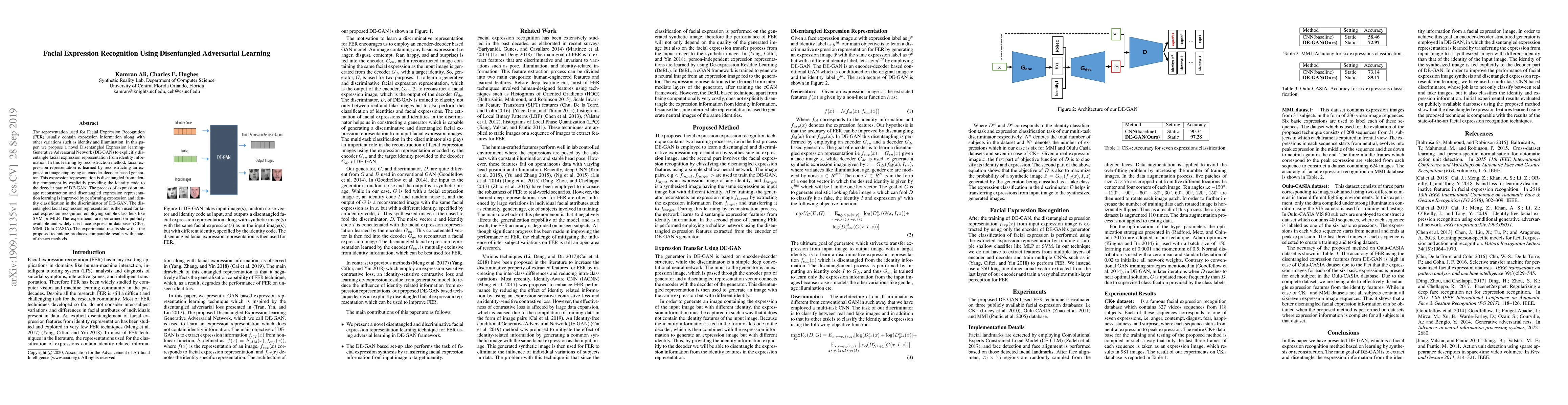 This work is different from existing research in the use of GANs for facial expression recognition and the exploration of disentangled representations for this task.