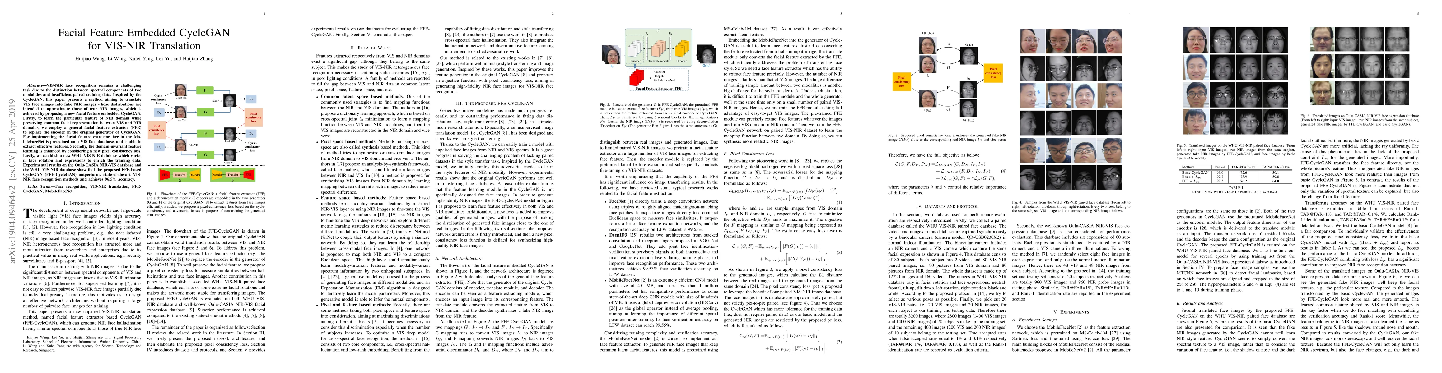 The paper proposes a Facial Feature Embedded CycleGAN for VIS-NIR translation, utilizing MobileFaceNet as a facial feature extractor and introducing a pixel consistency loss to enhance domain-invariant feature learning.