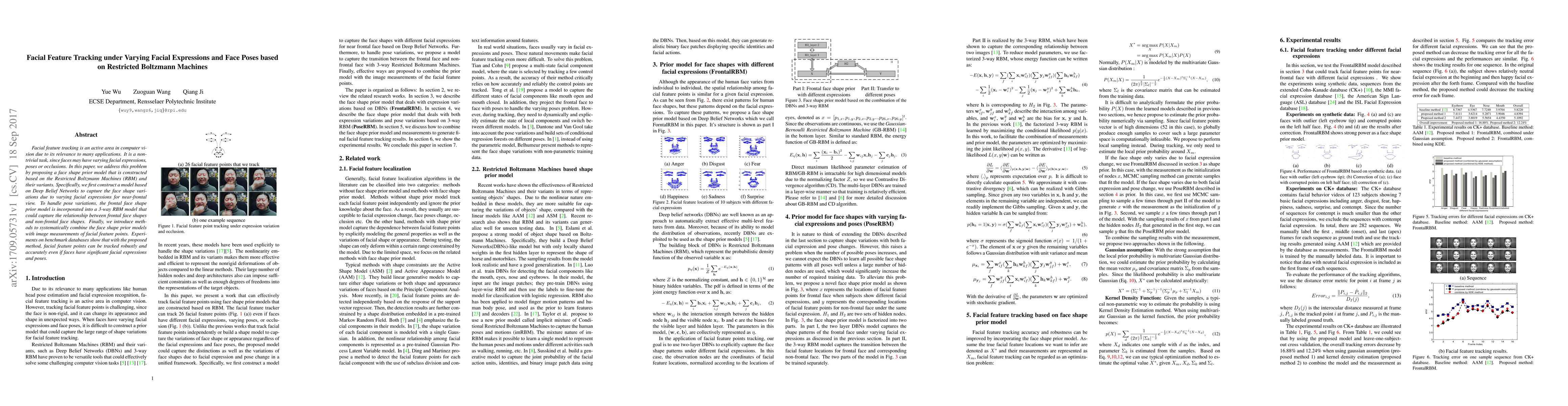 Researchers developed a facial feature tracking method using Restricted Boltzmann Machines that can accurately track faces with varying expressions and poses. Their approach shows robust performance on benchmark databases.