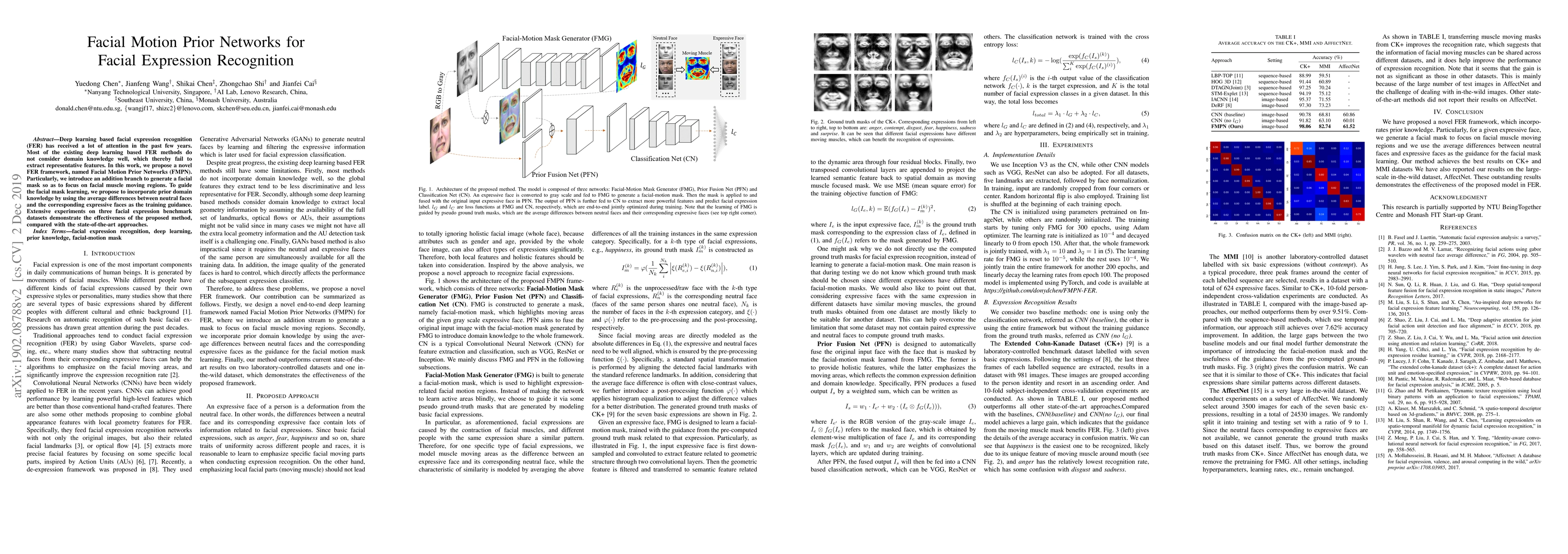 This paper proposes Facial Motion Prior Networks (FMPN) for facial expression recognition, incorporating domain knowledge to generate a facial mask focusing on muscle movement regions. The method uses average differences between neutral and expressive faces to guide training, showing improved performance over state-of-the-art methods on benchmark datasets.