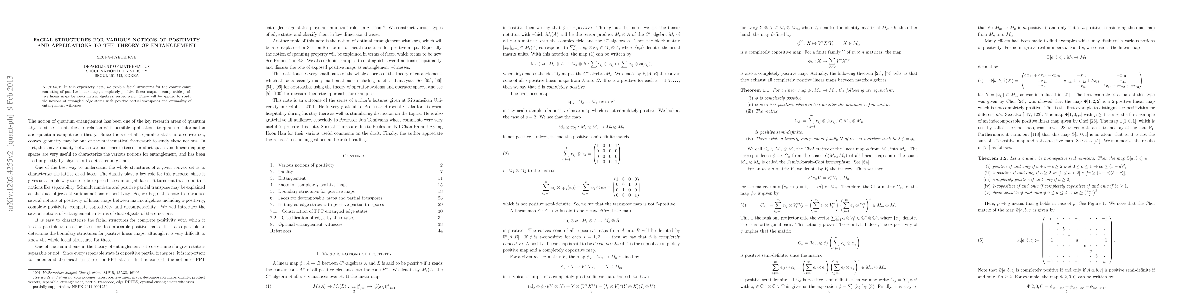In this expository note, we explain facial structures for the convex cones consisting of positive linear maps, completely positive linear maps, decomposable positive linear maps between matrix algebras, respectively. These will be applied to study the notions of entangled edge states with positive partial transposes and optimality of entanglement witnesses.
