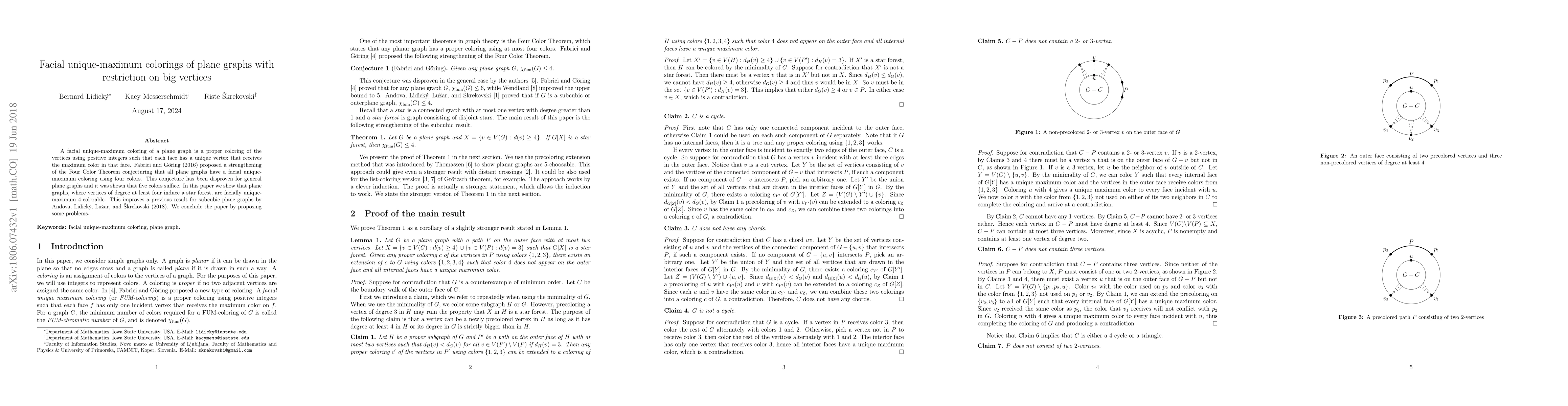 This paper demonstrates that plane graphs with vertices of degree at least four forming a star forest can be facially unique-maximum 4-colored, improving upon previous results for subcubic plane graphs. It disproves a conjecture by Fabrici and Göring that all plane graphs can be 4-colored under these conditions.