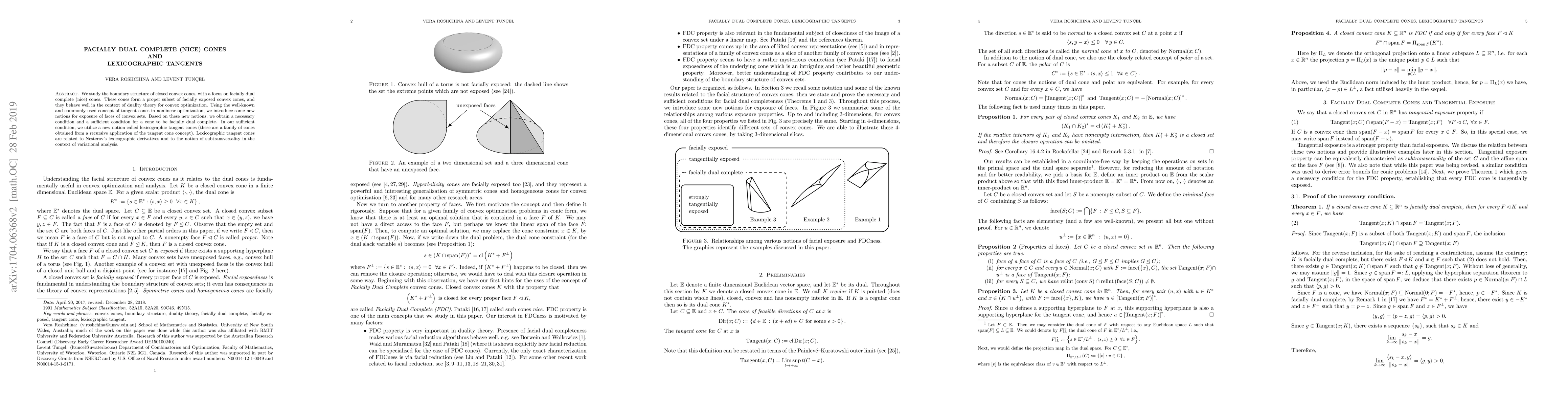This paper investigates the boundary structure of closed convex cones, particularly facially dual complete (nice) cones, which are a subset of facially exposed convex cones. It introduces lexicographic tangent cones, a recursive application of the tangent cone concept, to establish necessary and sufficient conditions for a cone to be facially dual complete.