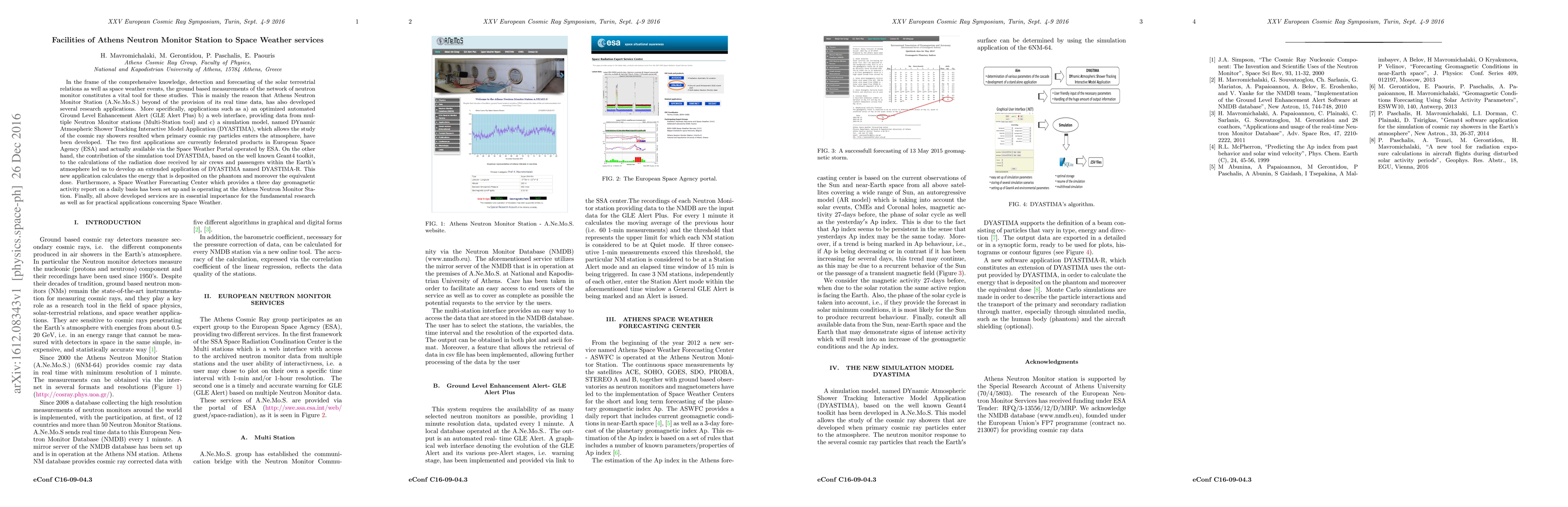 The Athens Neutron Monitor Station (A.Ne.Mo.S.) provides real-time data and advanced research applications, including an automated alert system, a multi-station data interface, and a simulation model for cosmic ray showers. These services are crucial for space weather forecasting and radiation dose calculations for air travelers.
