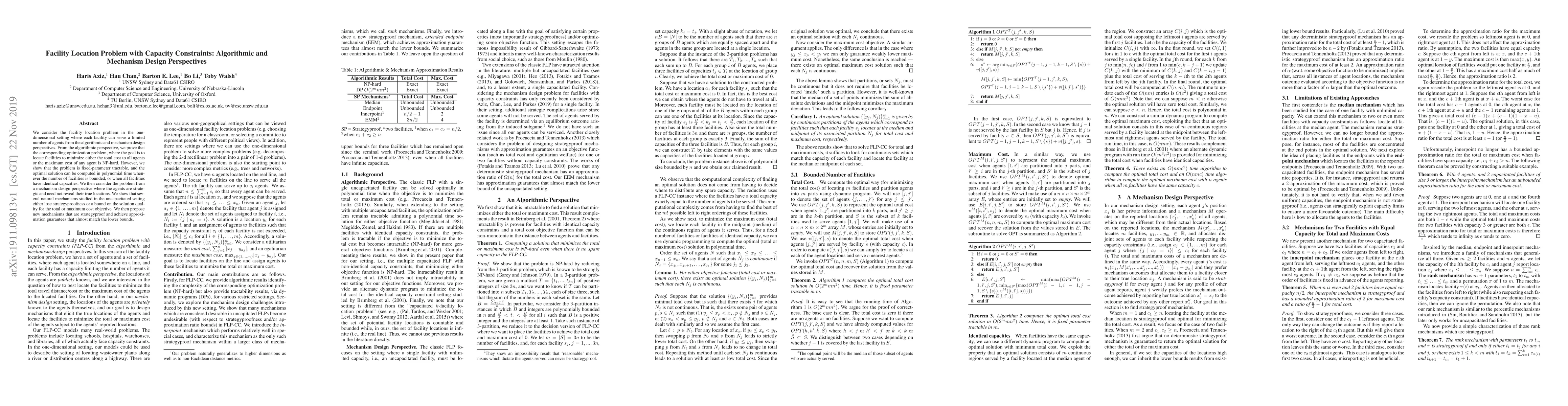 The paper investigates facility location problems with capacity constraints from algorithmic and mechanism design perspectives, revealing challenges in solving these problems efficiently and finding strategyproof mechanisms.
