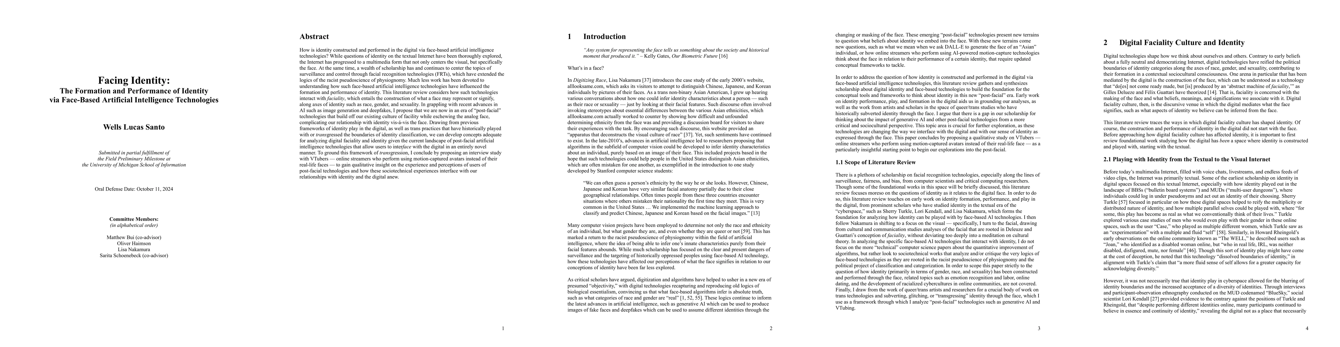 How is identity constructed and performed in the digital via face-based artificial intelligence technologies? While questions of identity on the textual Internet have been thoroughly explored, the Internet has progressed to a multimedia form that not only centers the visual, but specifically the face. At the same time, a wealth of scholarship has and continues to center the topics of surveillance and control through facial recognition technologies (FRTs), which have extended the logics of the racist pseudoscience of physiognomy. Much less work has been devoted to understanding how such face-based artificial intelligence technologies have influenced the formation and performance of identity. This literature review considers how such technologies interact with faciality, which entails the construction of what a face may represent or signify, along axes of identity such as race, gender, and sexuality. In grappling with recent advances in AI such as image generation and deepfakes, I propose that we are now in an era of "post-facial" technologies that build off our existing culture of facility while eschewing the analog face, complicating our relationship with identity vis-a-vis the face. Drawing from previous frameworks of identity play in the digital, as well as trans practices that have historically played with or transgressed the boundaries of identity classification, we can develop concepts adequate for analyzing digital faciality and identity given the current landscape of post-facial artificial intelligence technologies that allow users to interface with the digital in an entirely novel manner. To ground this framework of transgression, I conclude by proposing an interview study with VTubers -- online streamers who perform using motion-captured avatars instead of their real-life faces -- to gain qualitative insight on how these sociotechnical experiences.