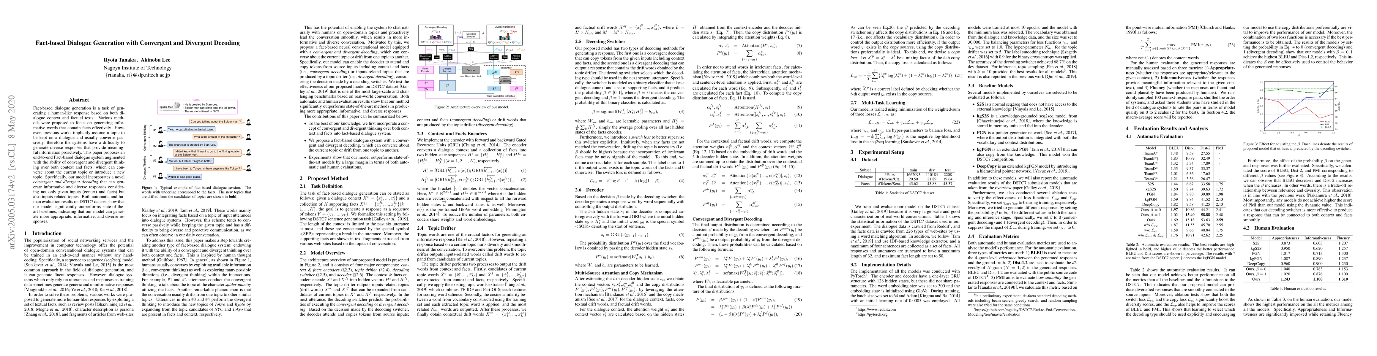 This paper proposes a novel fact-based dialogue system that can generate informative and diverse responses through convergent and divergent decoding, outperforming state-of-the-art baselines on the DSTC7 dataset.