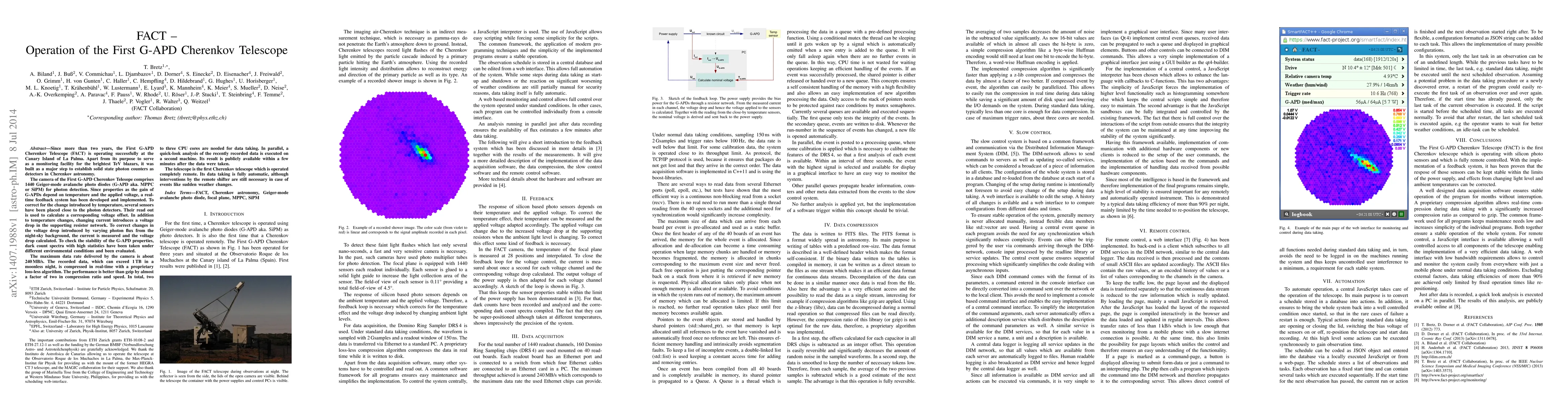 The First G-APD Cherenkov Telescope (FACT) on La Palma monitors bright TeV blazars, utilizing 1440 Geiger-mode avalanche photodiodes for photon detection. A real-time feedback system corrects for temperature and voltage variations, ensuring stable G-APD performance.