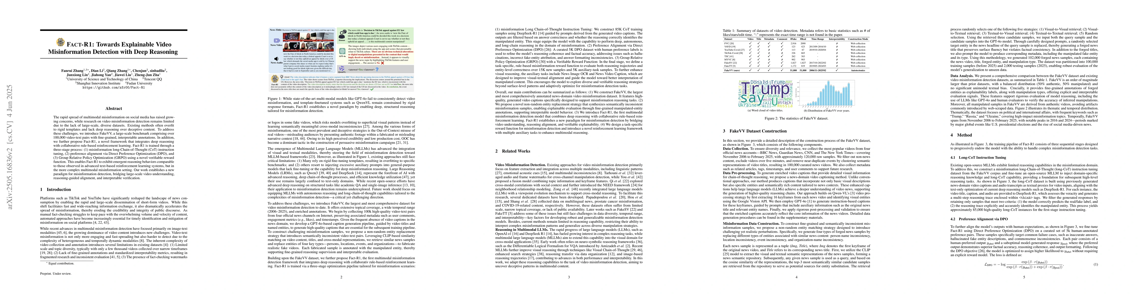 A new framework called Fact-R1 is proposed for detecting video misinformation on social media, integrating deep reasoning with reinforcement learning to achieve emergent reasoning behaviors.