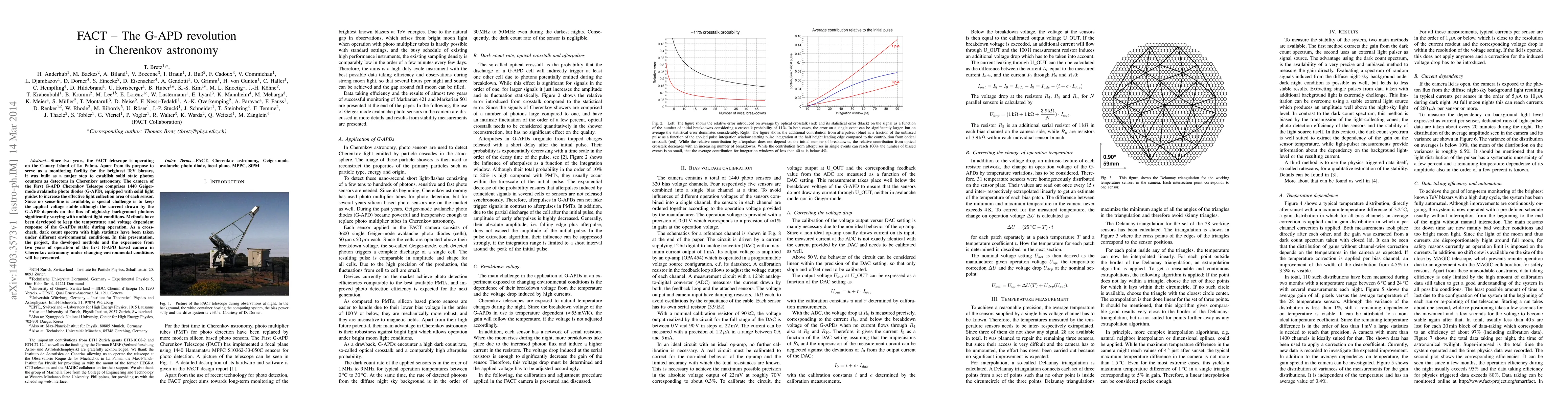 The FACT telescope, operating on La Palma, uses 1440 G-APD detectors to advance Cherenkov astronomy. Developed methods stabilize voltage and temperature for consistent G-APD performance despite varying ambient light conditions.