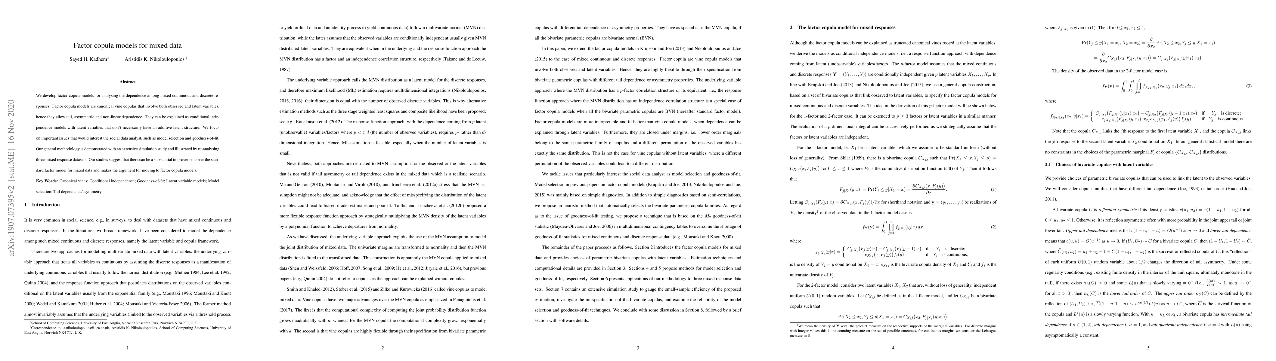 The paper introduces an extension of factor copula models to accommodate mixed continuous and discrete responses, providing a more comprehensive framework for dependence analysis in such datasets.