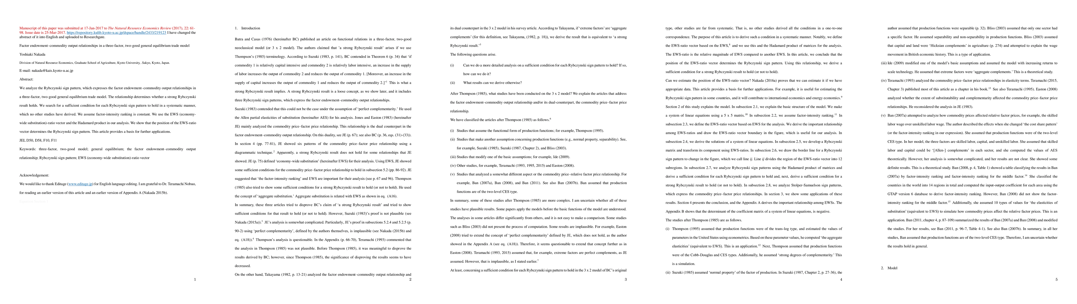 This paper analyzes the Rybczynski sign pattern in a three-factor, two-good general equilibrium trade model to find sufficient conditions for its occurrence. It provides a basis for further applications by focusing on the position of the economy-wide substitution ratio vector.