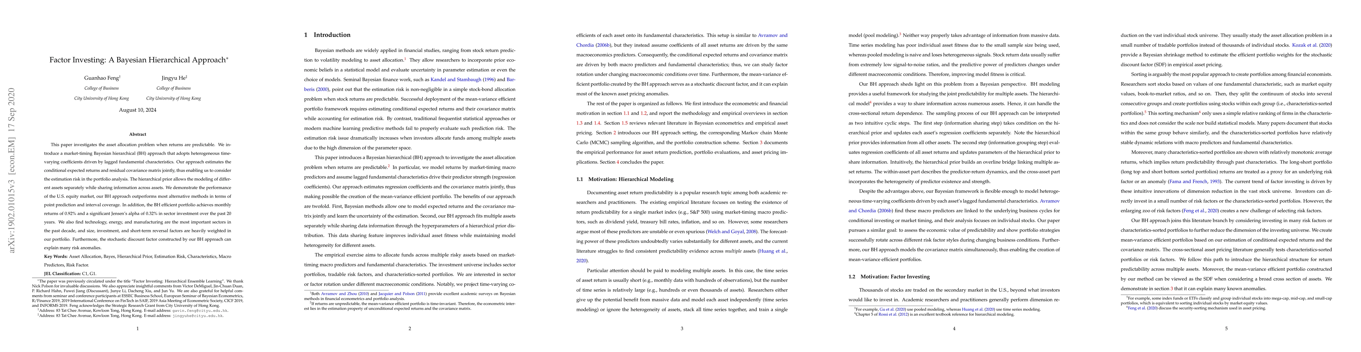 This paper proposes a Bayesian hierarchical approach for factor investing that uses time-varying coefficients based on lagged fundamental characteristics to predict returns and optimize portfolio allocation. The method outperforms other techniques in both point and interval predictions, achieving notable returns and identifying key sectors and factors.