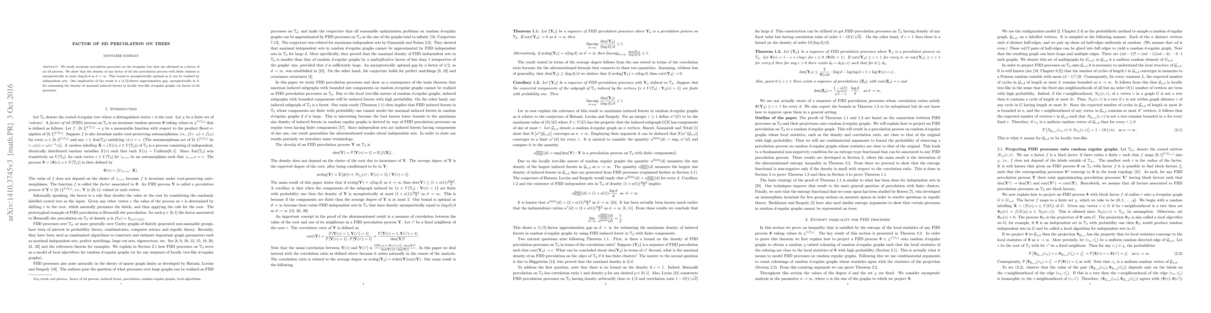 This paper investigates invariant percolation processes on the d-regular tree derived from iid percolation, showing that the density of any such factor process is asymptotically at most (log d)/d as d increases. The result highlights an optimal approximation gap for estimating maximal induced forests in d-regular graphs.