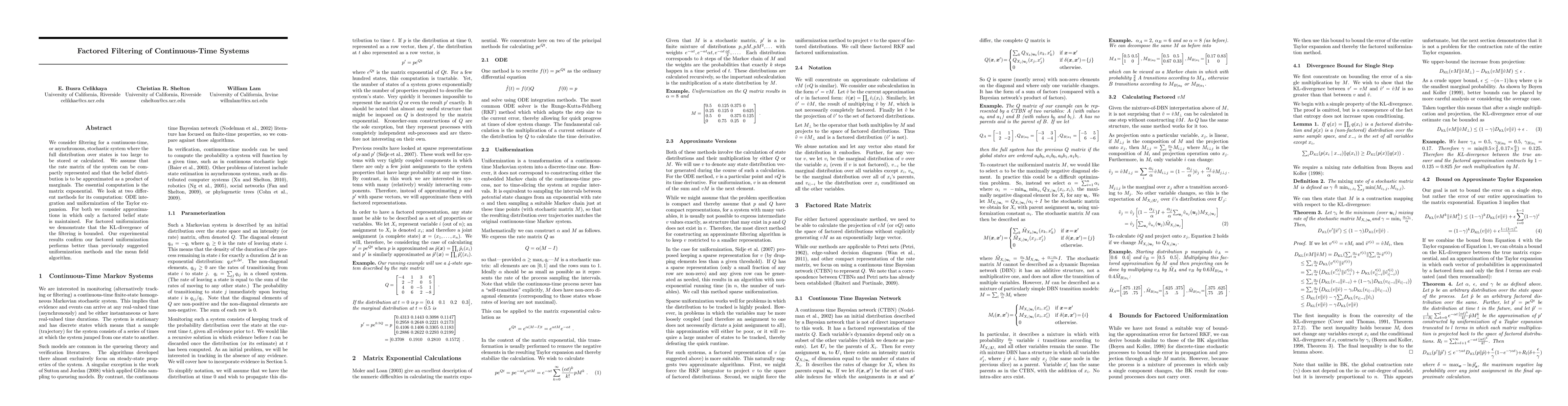 This paper proposes a new filtering method for continuous-time systems that uses factored uniformization to approximate the belief distribution, achieving better performance than existing methods. It demonstrates the effectiveness of this approach through experimental results.