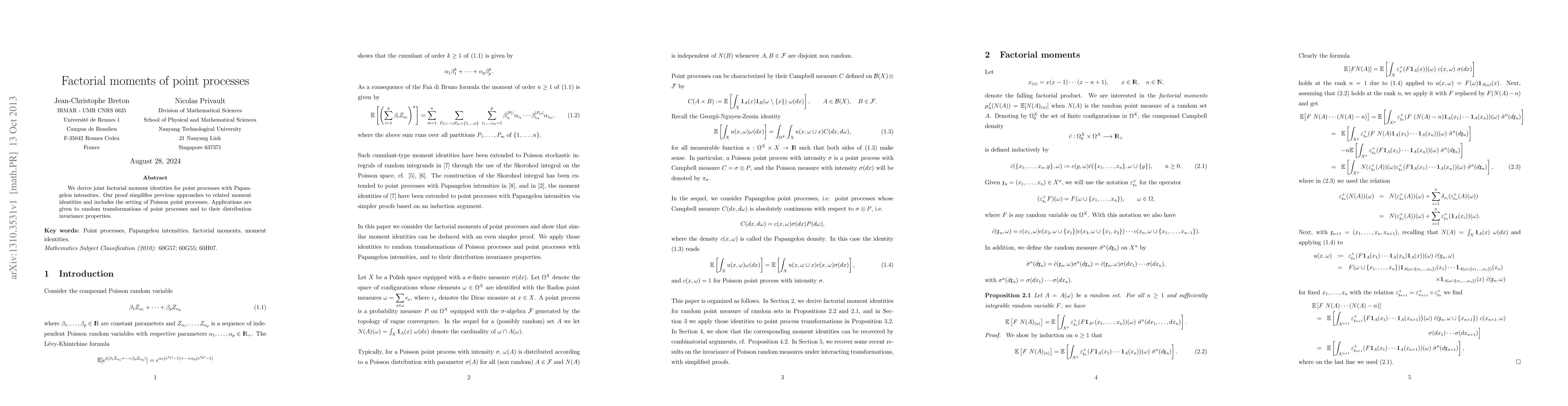We derive joint factorial moment identities for point processes with Papangelou intensities. Our proof simplifies previous approaches to related moment identities and includes the setting of Poisson point processes. Applications are given to random transformations of point processes and to their distribution invariance properties.