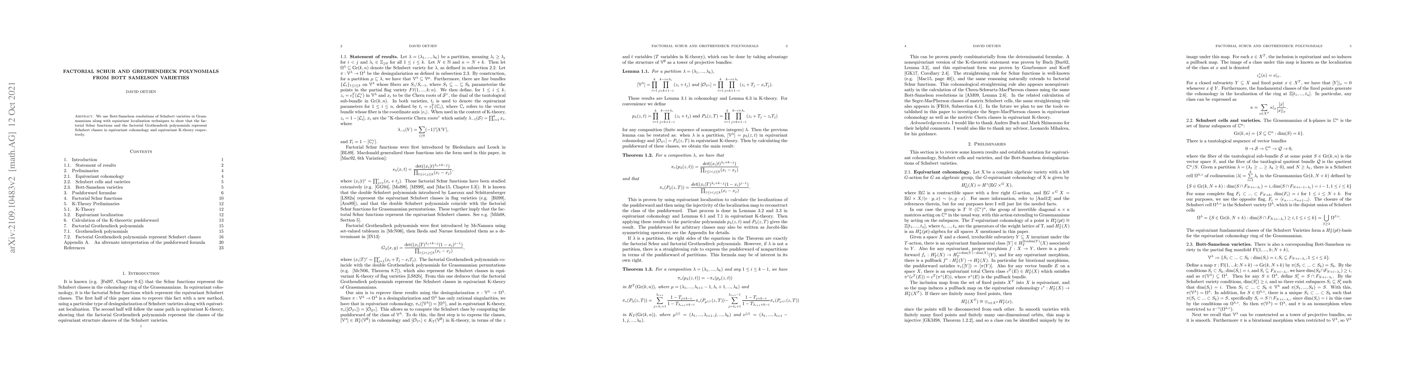 Summary: The paper demonstrates that factorial Schur and Grothendieck polynomials correspond to Schubert classes by employing Bott-Samelson resolutions and equivariant localization on Grassmannians. This establishes their roles in equivariant cohomology and equivariant K-theory.