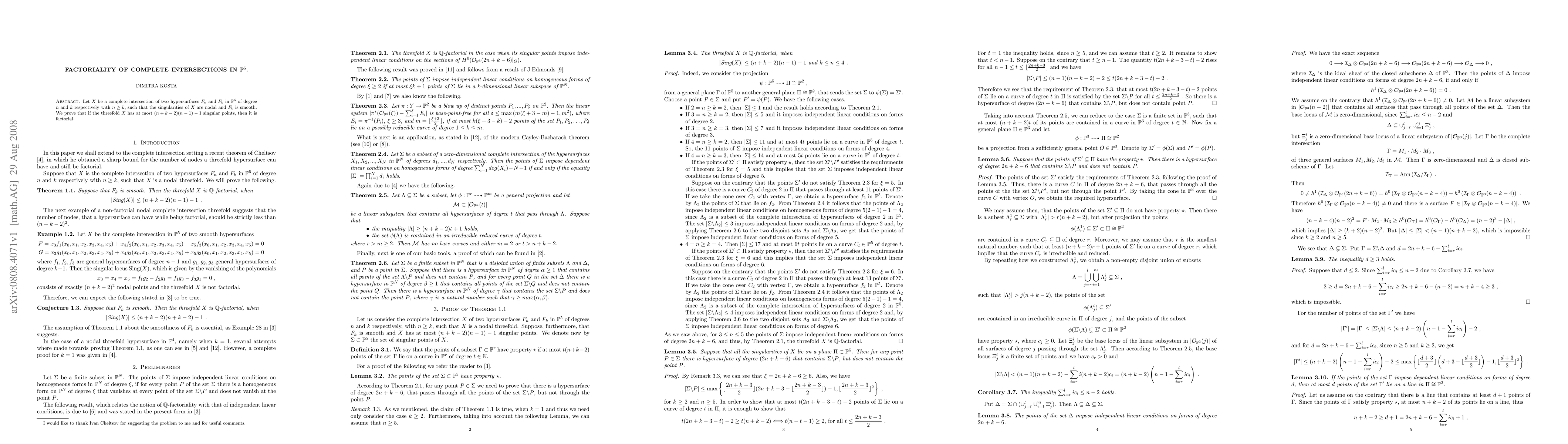 Summary: This paper proves that a complete intersection threefold in projective space formed by two hypersurfaces with nodal singularities and one smooth hypersurface is factorial if it has no more than a specified number of singular points. The factoriality condition depends on the degrees of the intersecting hypersurfaces.