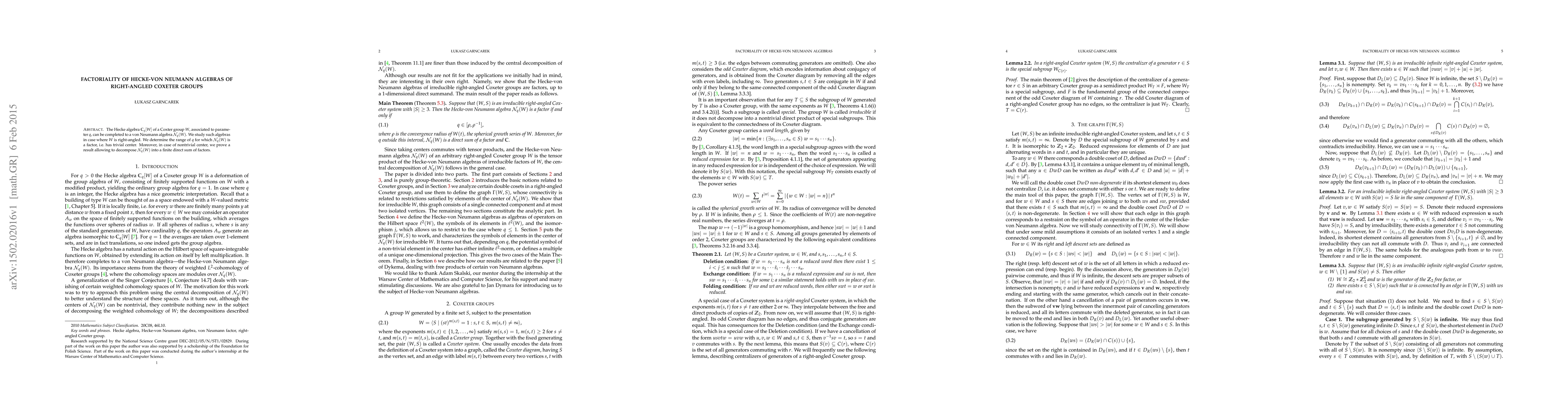 The Hecke algebra $\mathbb{C}_q[W]$ of a Coxter group $W$, associated to parameter $q$, can be completed to a von Neumann algebra $\mathcal{N}_q(W)$. We study such algebras in case where $W$ is right-angled. We determine the range of $q$ for which $\mathcal{N}_q(W)$ is a factor, i.e. has trivial center. Moreover, in case of nontrivial center, we prove a result allowing to decompose $\mathcal{N}_q(W)$ into a finite direct sum of factors.